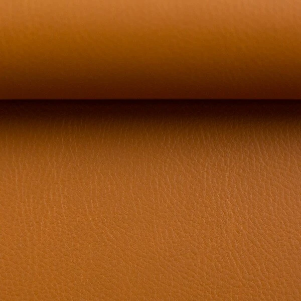 Cognacfarbenes Dezent Genarbtes, Glattes Kunstleder Ocker / Senfgelb – Veganes Lederimitat Meterware