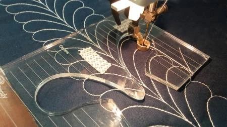 Sie benötigen zusätzlich einen Linealfuß. Dieser Spezialquiltfuß ist nicht im Lieferumfang enthalten.