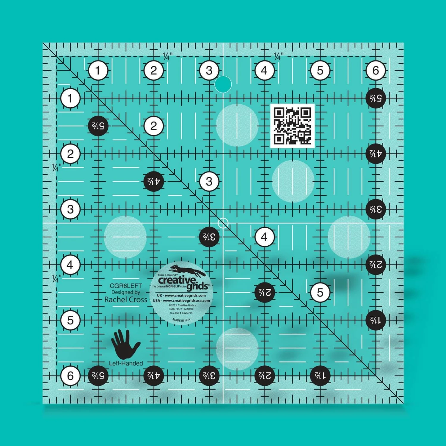 Die beliebten Creative Grid Linien sind gut sichtbar schwarz & weiß aufgedruckt und sorgen für gute Sichtbarkeit auf allen Stofffarben und auch die patentierte Creative Grids typische Antirutschausstattung ist gegeben. Dadurch lässt sich das Lineal leicht auf den Stoffen hin und her verschieben, bis auf das Lineal Druck ausgeübt wird. Dann hält die Anti-Rutsch-Spezialbeschichtung das Lineal an Ort und Stelle und vermeidet so Verschneiden und Verrutschen während des Zuschnitts.