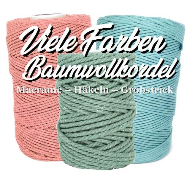Hochwertiges Macramé-Garn aus 45-fädig gezwirnter Baumwolle in 4.5 mm Garnstärke perfekt für das Knüpfen in Makrameetechnik, zum Häkeln & Stricken als Grobstrickgarn.