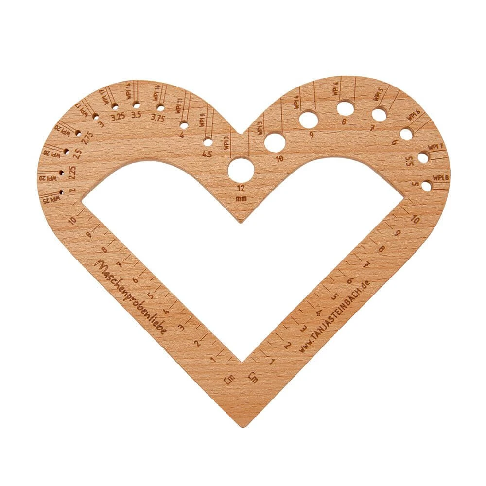 - Natürlich kann man damit Maschenproben auszählen In beiden Herzen gibt es ein bemaßtes Fenster, welche das Auszählen erleichtern. Die Zentimeter Skala kann man auch “so” zum Abmessen nutzen.