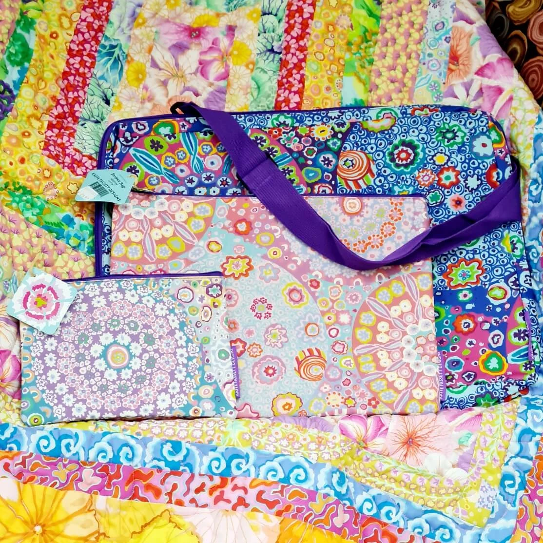 Gefertigt aus 100% Recyclingmaterial wurden diese Taschen bedruckt mit einem der beliebtesten Stoffdesigns des Meisters der Farben Kaffe Fassett.