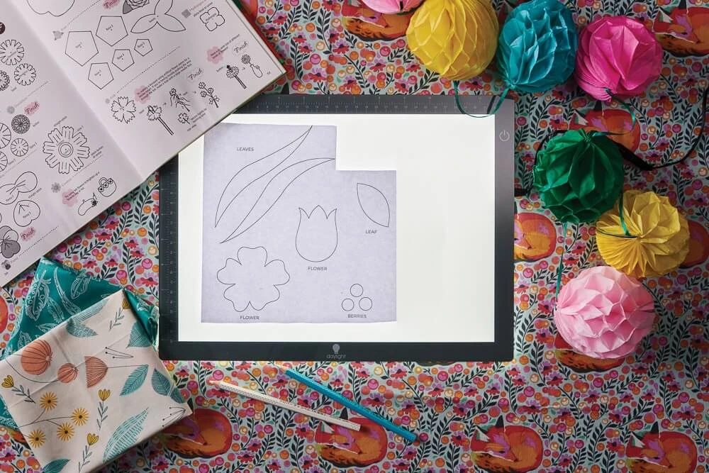 Ultrahell, ultraschlank, ultraleicht – die Daylight Wafer Leuchtplatte ist ein unverzichtbares Werkzeug für alle Pausarbeiten auf Papier und Stoff. LED- Leuchtplatte Lightbox mit gleichmäßiger Helligkeit über die gesamte Fläche. Das Licht ist dimmbar und lässt sich an verschiedene Papierstärken und Stoffdicken anpassen. Mit praktischer Skalierung (Zoll und Zentimeter) an der Seite. Die Wafer 1 Leuchtplatte entspricht dem europäischen A4-Format.
